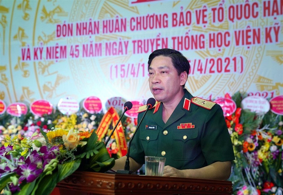 Thiếu tướng Vũ Ngọc Thiềm trao Huân chương Bảo vệ tổ quốc hạng Nhì cho Học viện KTMM