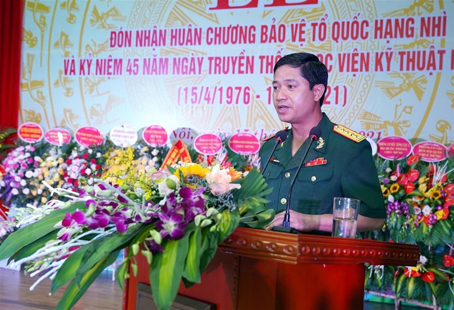 Đại tá Nguyễn Hữu Hùng, Giám đốc Học viện KTMM đọc diễn văn tại buổi Lễ