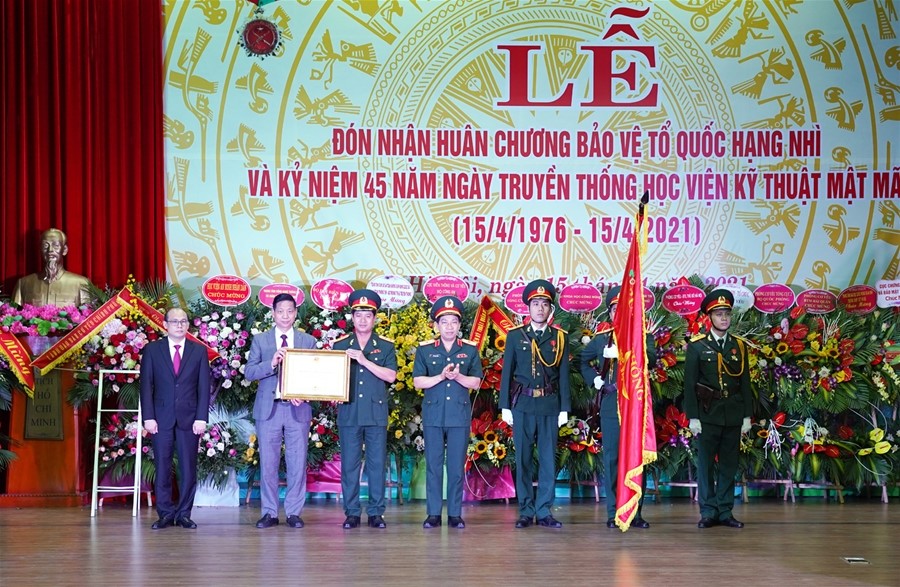 Sáng ngày 15/4/2021, tại Hà Nội, Học viện Kỹ thuật Mật mã đã long trọng tổ chức Lễ Kỷ niệm 45 năm ngày truyền thống và đón nhận Huân chương Bảo vệ tổ quốc hạng Nhì.