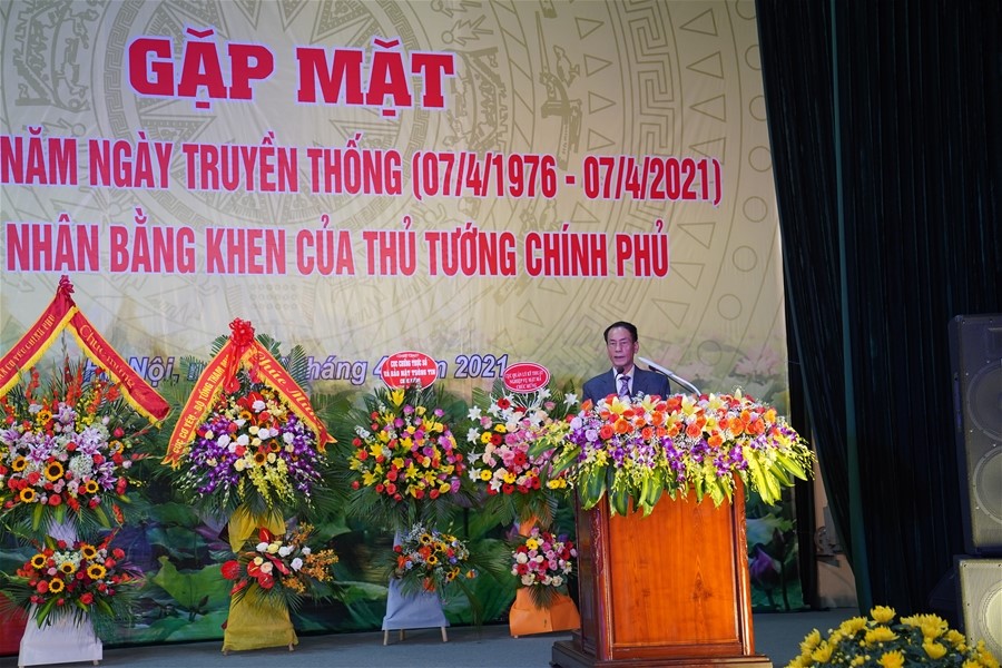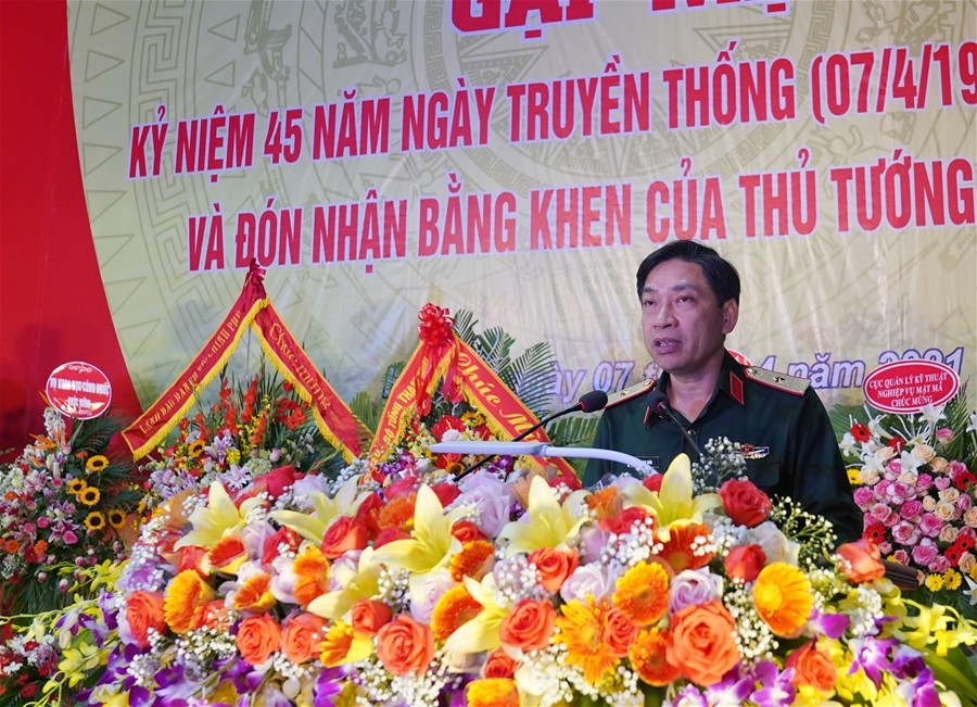 Đồng chí Thiếu tướng Vũ Ngọc Thiềm, Trưởng ban Ban Cơ yếu Chính phủ phát biểu tại buổi gặp mặt