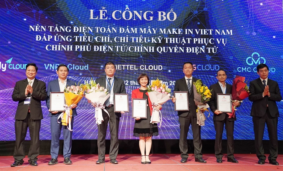 Lãnh đạo Cục An toàn thông tin, Bộ TT&TT trao chứng nhận cho 5 doanh nghiệp có nền tảng điện toán đám mây đạt tiêu chí, kỹ thuật