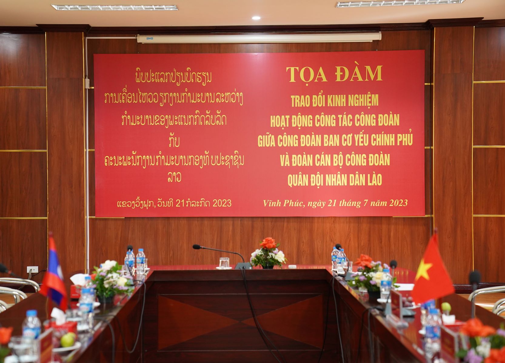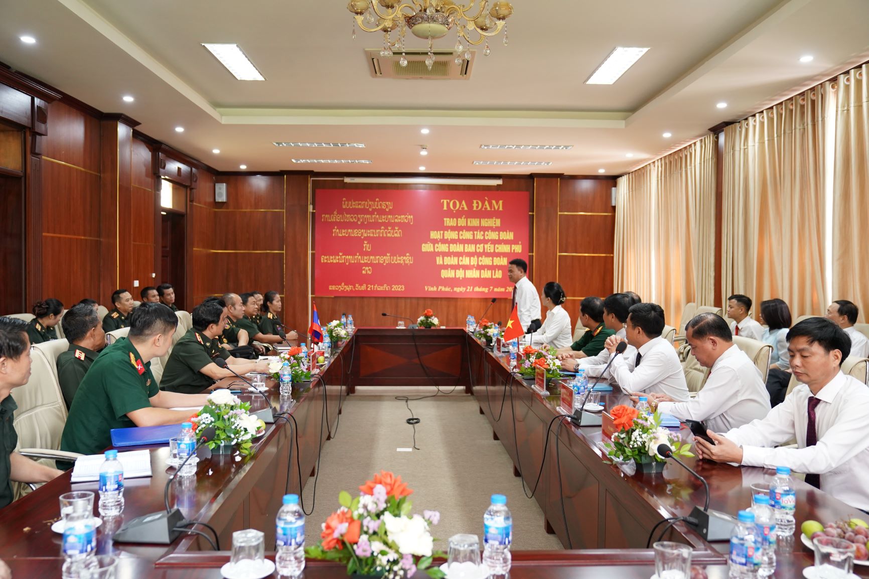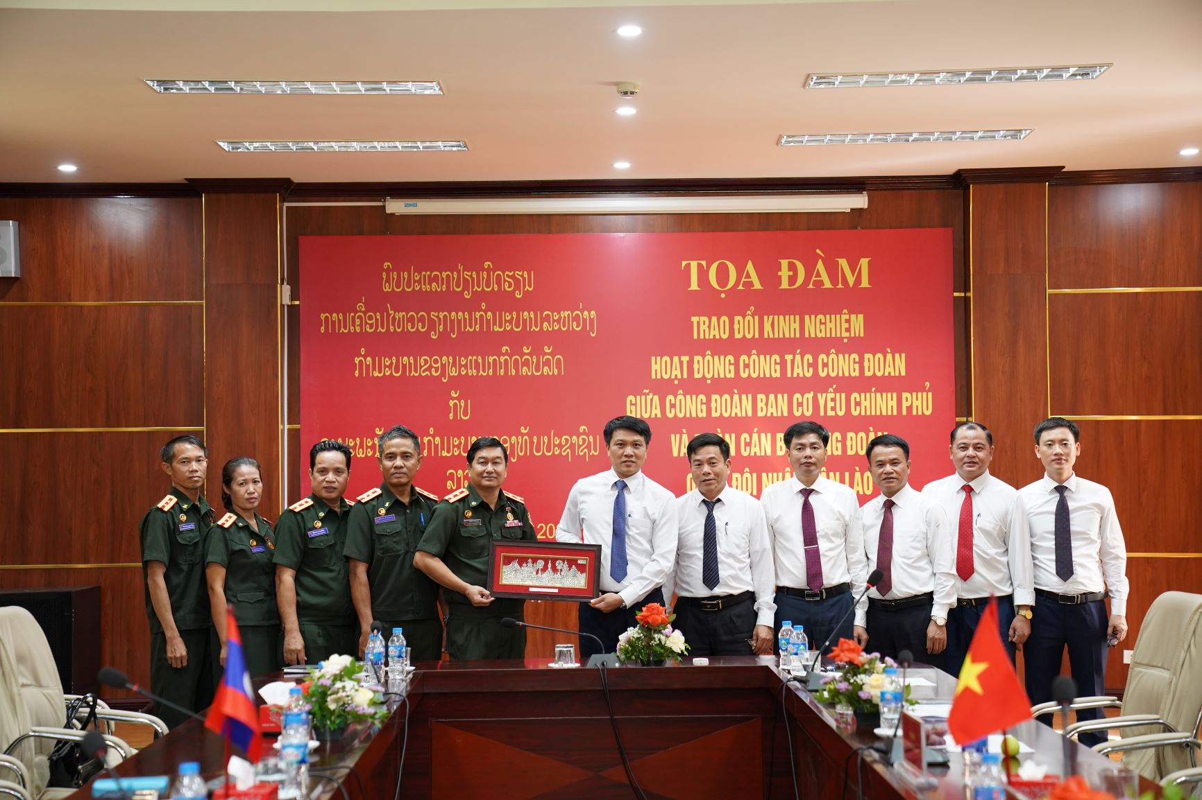 Tọa đàm trao đổi kinh nghiệm hoạt động công tác công đoàn giữa công đoàn Ban Cơ yếu Chính phủ và đoàn cán bộ công đoàn Quân đội nhân dân Lào