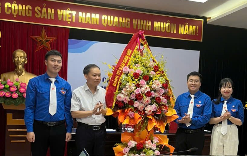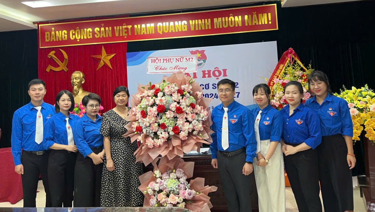 Đồng chí Nguyễn Ngọc Điệp, Phó Bí thư Đảng ủy, Phó Giám độc M2 tặng hoa chúc mừng Đại hội Đoàn Thanh niên nhiệm kỳ 2024-2027