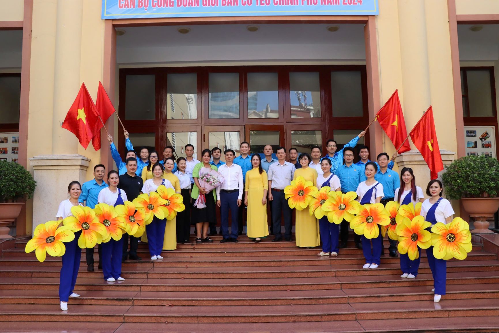 Cán bộ, đoàn viên công đoàn Học viện Kỹ thuật mật mã chụp ảnh lưu tại Hội thi cán bộ công đoàn cơ sở giỏi Ban Cơ yếu Chính phủ năm 2024