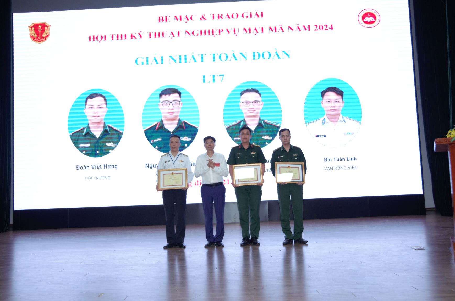 Đồng chí Nguyễn Tân Đăng, Bí thư Đảng uỷ, Phó Giám đốc Học viện trao giải cho các đội đạt thành tích tại Hội thi nghiệp vụ Kỹ thuật mật mã năm 2024