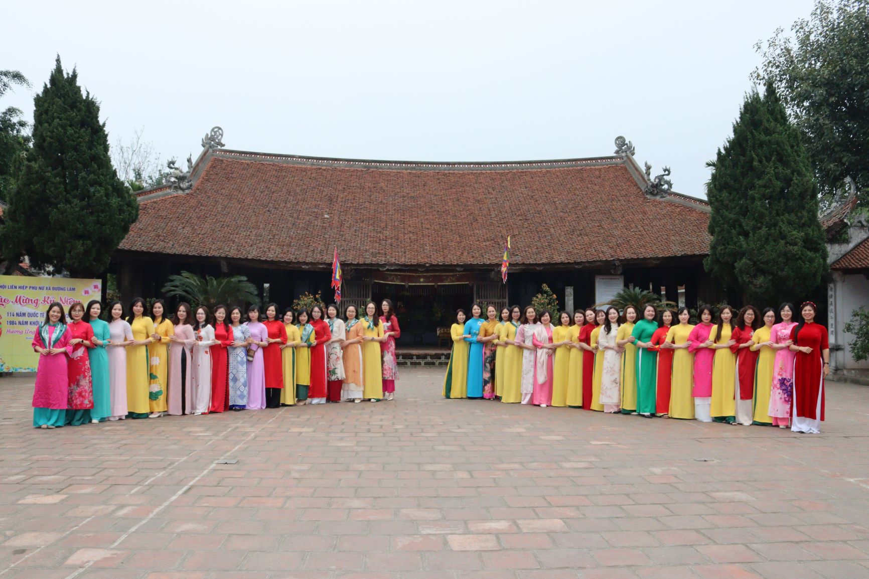 Hội viên Hội Phụ nữ Học viện Kỹ thuật mật mã chụp ảnh lưu niêm nhân dịp thăm quan Làng cổ Đường Lâm