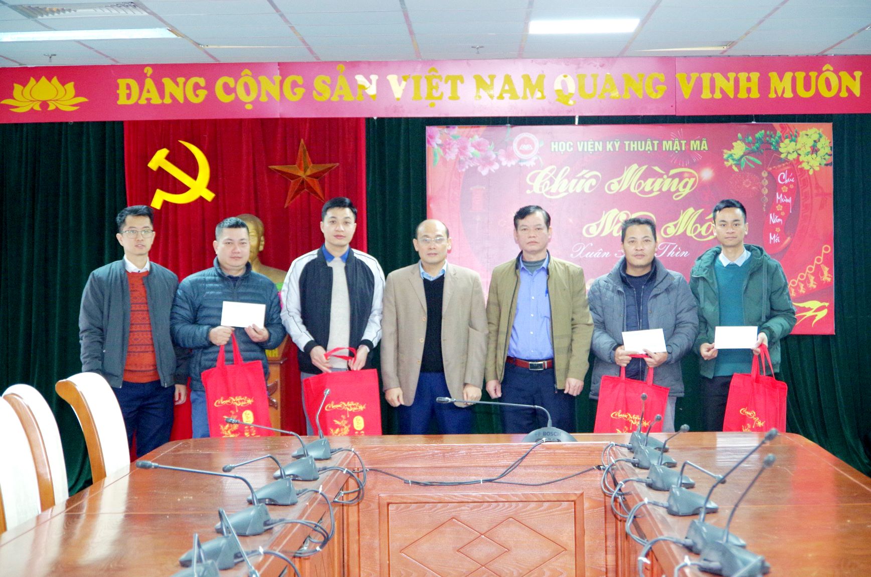 Đồng chí PGS. TS Lương Thế Dũng, Ủy viên Thường vụ Đảng uỷ, Phó Giám đốc Học viện Kỹ thuật mật mã thay mặt Đảng uỷ, Ban Giám đốc trao quà cho các cán bộ có hoàn cảnh khó khăn nhân dịp Tết Nguyên đán