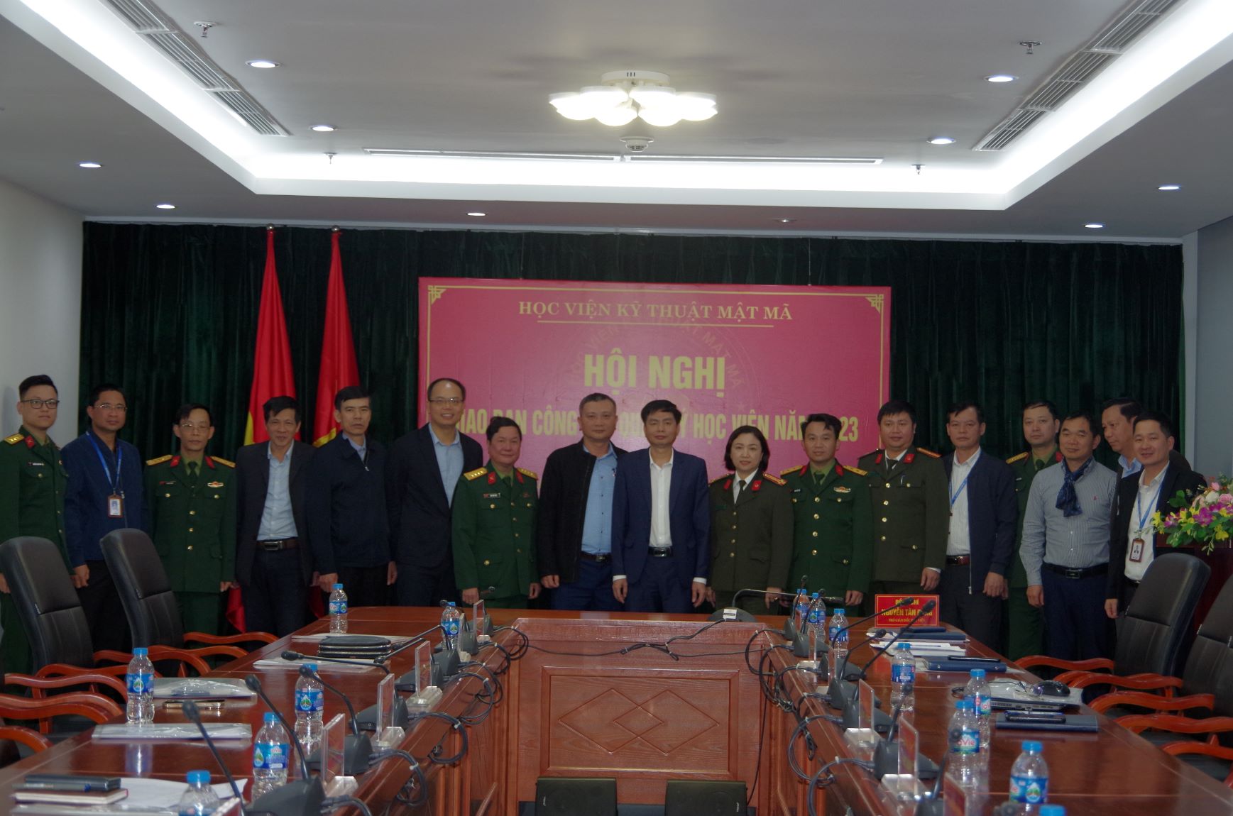 Các đại biểu chụp ảnh lưu niệm tại buổi Giao ban công tác quản lý học viên của Học viện Kỹ thuật mật mã