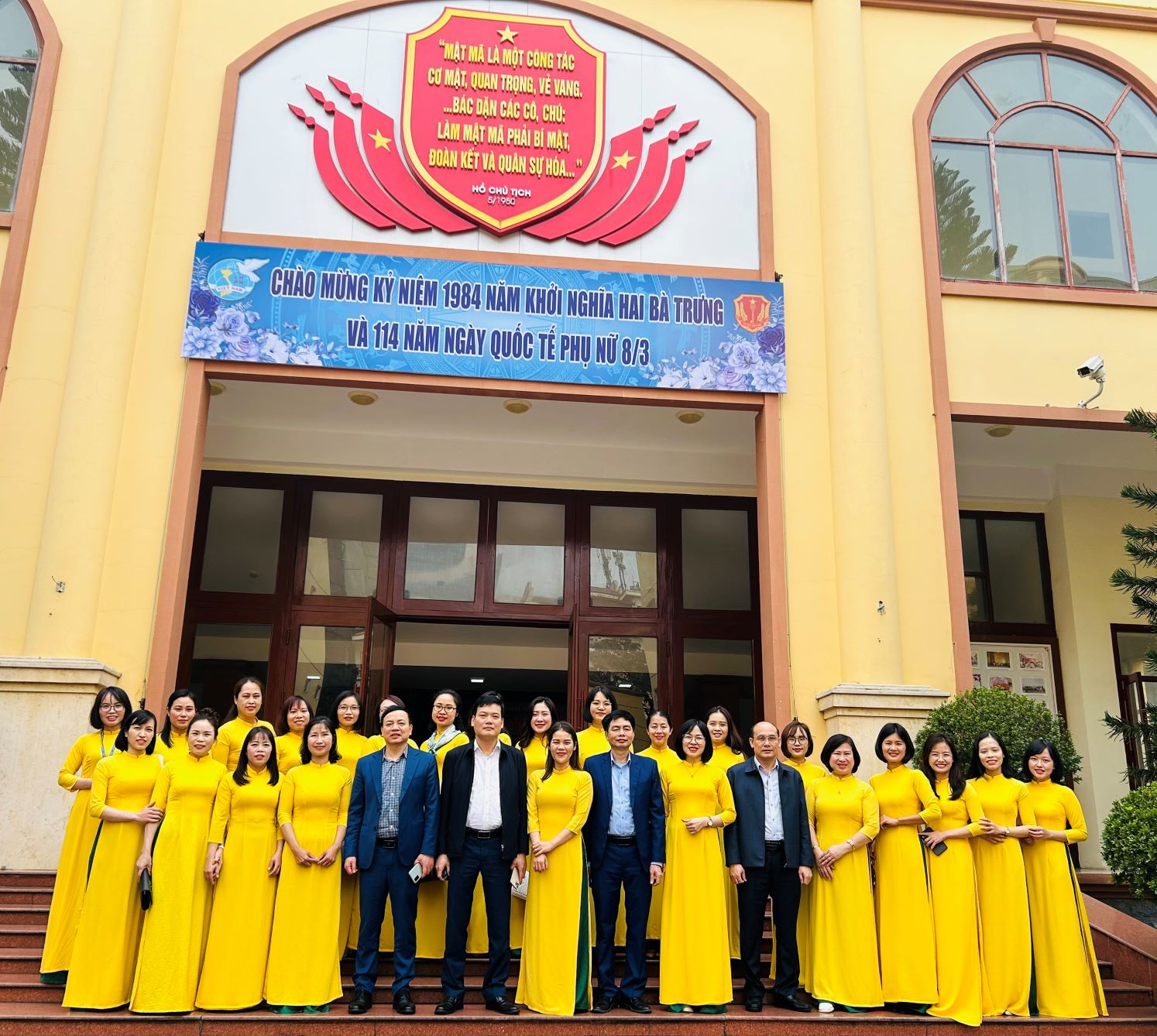 Các đồng chí Lãnh đạo Học viện Kỹ thuật mật mã chụp ảnh lưu niệm cùng hội viên Hội Phụ nữ Học viện nhân kỷ niệm ngày Quốc tế Phụ nữ