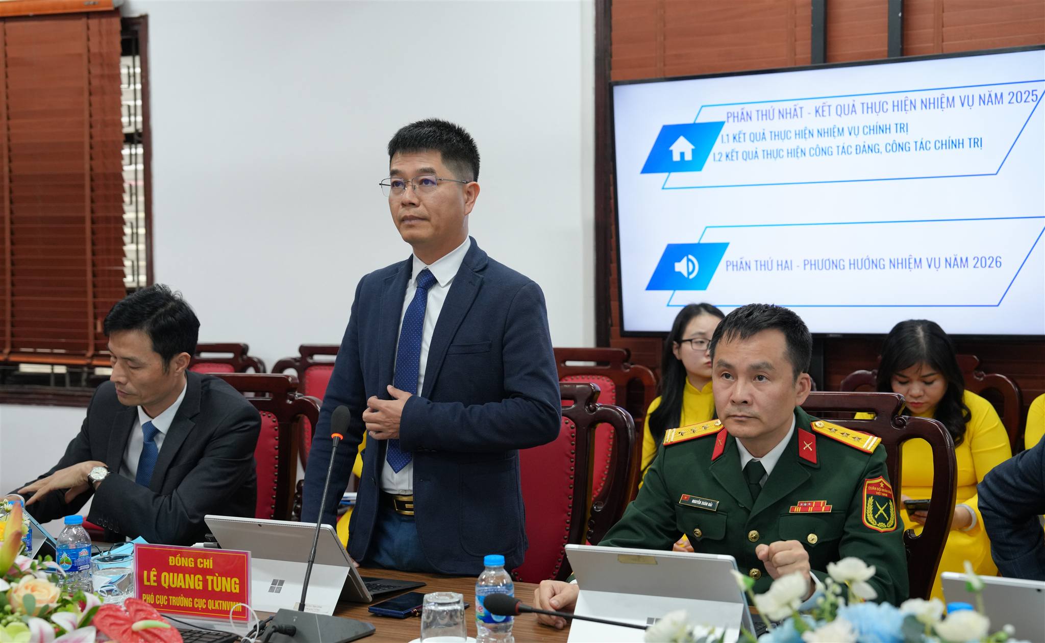 Đồng chí Nguyễn Văn Toàn, Phó Cục trưởng Cục Chính trị - Tổ chức phát biểu tại Hội nghị.