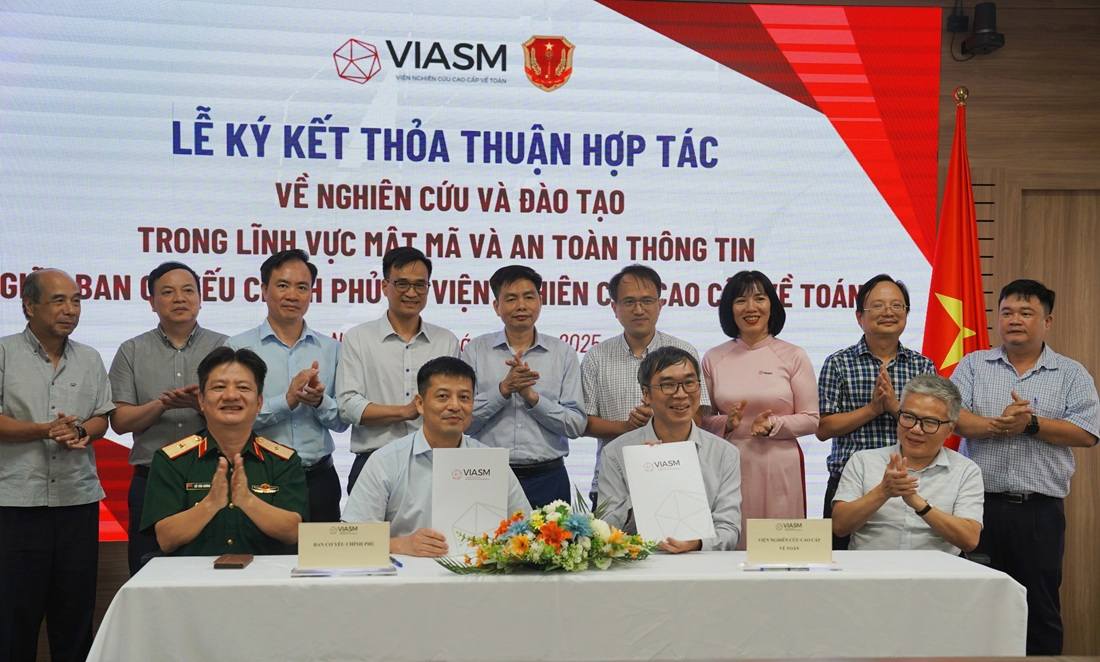 On the afternoon of August 19 in Hanoi, a cooperation agreement on research and training in the fields of cryptography and information security was signed between the Institute of Cryptographic Science and Technology under the Government Cipher Committee and the Vietnam Institute for Advanced Study in Mathematics (VIASM). The five-year agreement aims to promote specialized mathematical research in cryptography, advance cryptographic science and technology, and focus particularly on post-quantum cryptography.