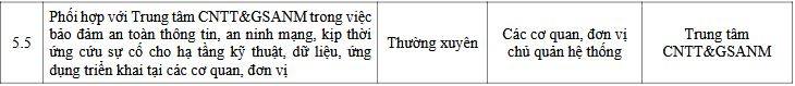 Trung tâm Công nghệ thông tin và Giám sát an ninh mạng, chủ trì, phối hợp với các cơ quan đơn vị thực hiện các chủ trương, chiến lược, cơ chế chính sách về dữ liệu và hoạt động xây dựng, phát triển cơ sở dữ liệu Ban Cơ yếu Chính phủ; quản lý, quản trị, vận hành, khai thác Trung tâm dữ liệu Ban Cơ yếu Chính phủ. Hướng dẫn, theo dõi, đôn đốc việc triển khai các nhiệm vụ đã được phân công tại Kế hoạch này; tổng hợp kết quả thực hiện, báo cáo Lãnh đạo Ban định kỳ hàng tháng.
