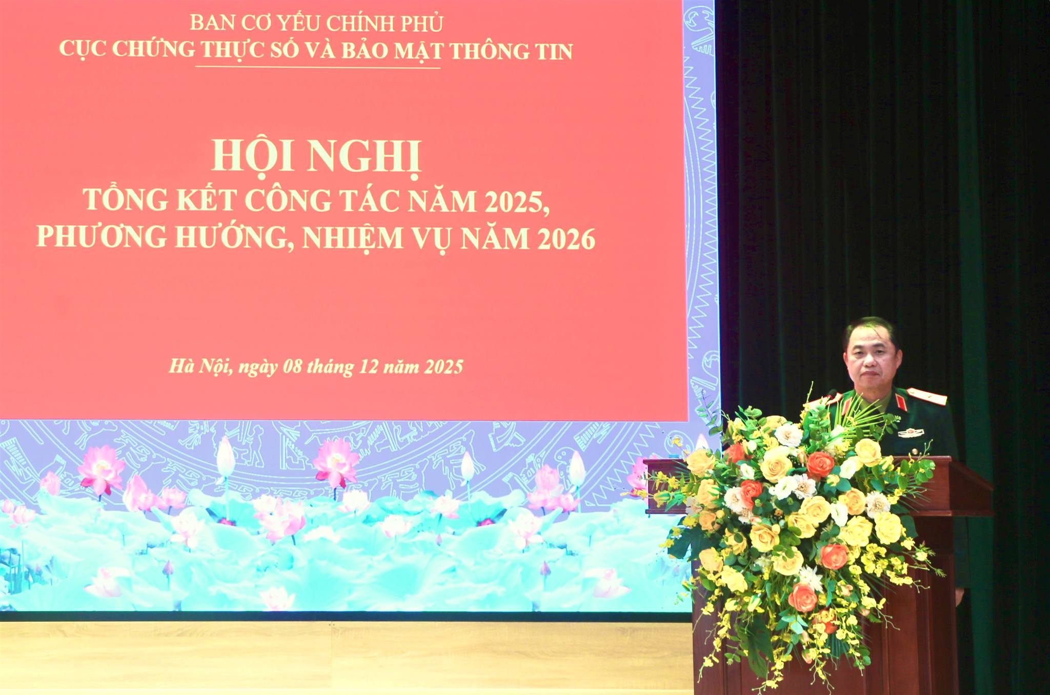 Chiều 08/12, tại Hòa Lạc, Cục Chứng thực số và Bảo mật thông tin đã tổ chức Hội nghị tổng kết công tác năm 2025, phương hướng, nhiệm vụ năm 2026. Thiếu tướng Nguyễn Đăng Lực, Phó Trưởng ban Ban Cơ yếu Chính phủ dự và chỉ đạo Hội nghị.