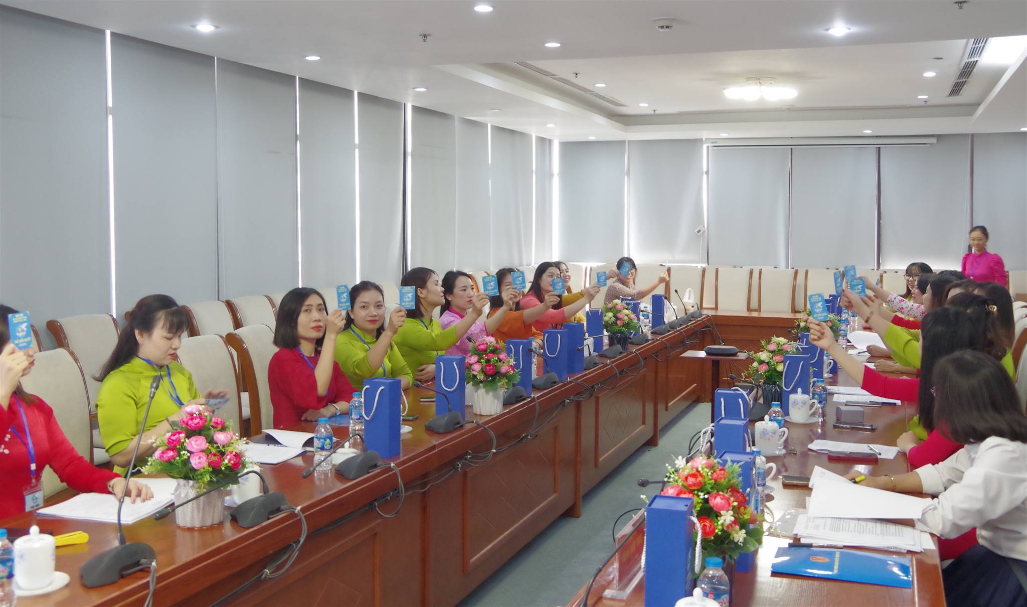 Cán bộ, hội viên Hội Phụ nữ Văn phòng biểu quyết thông qua danh sách bầu Ban Chấp hành nhiệm kỳ 2025-2030.