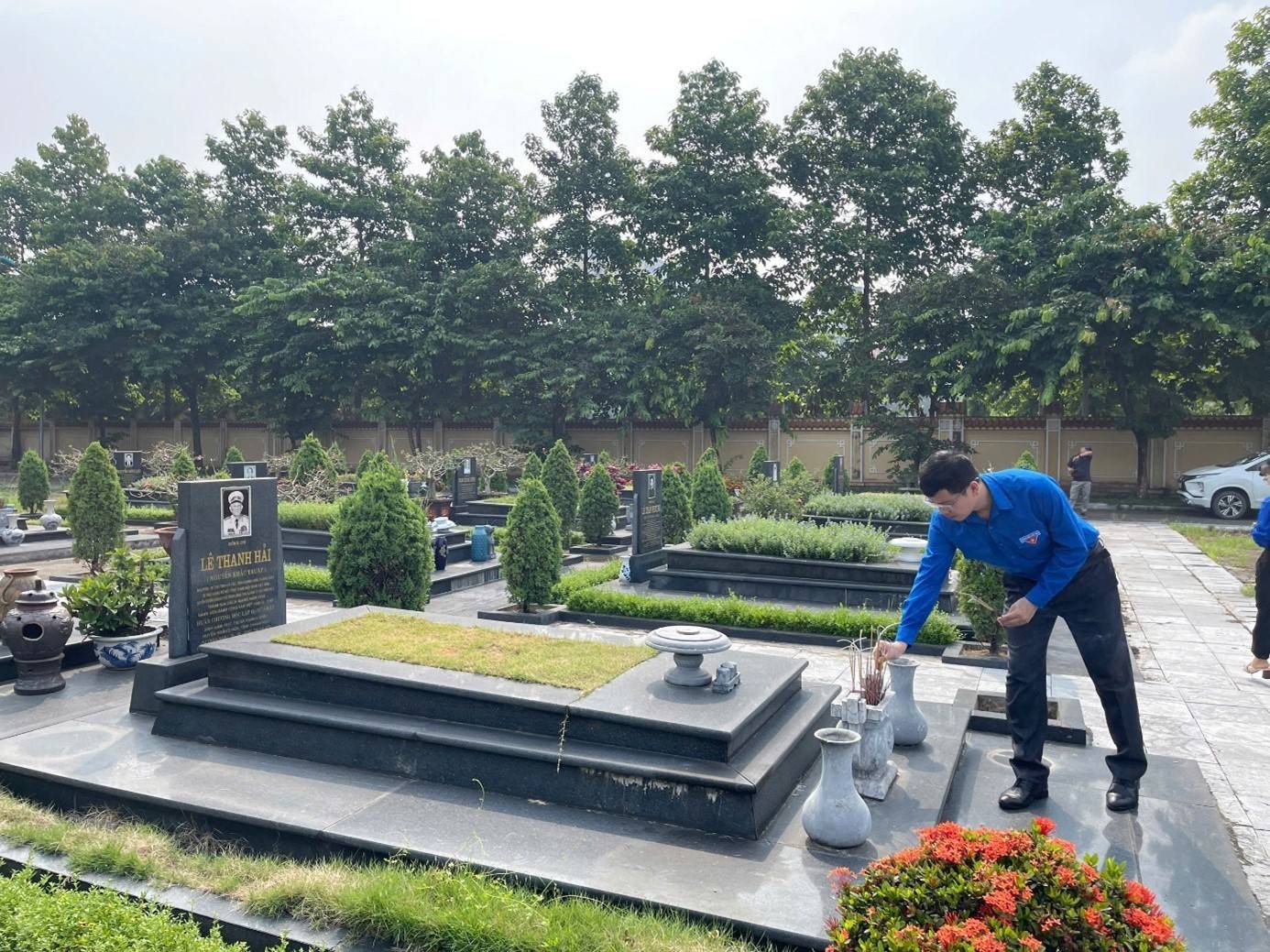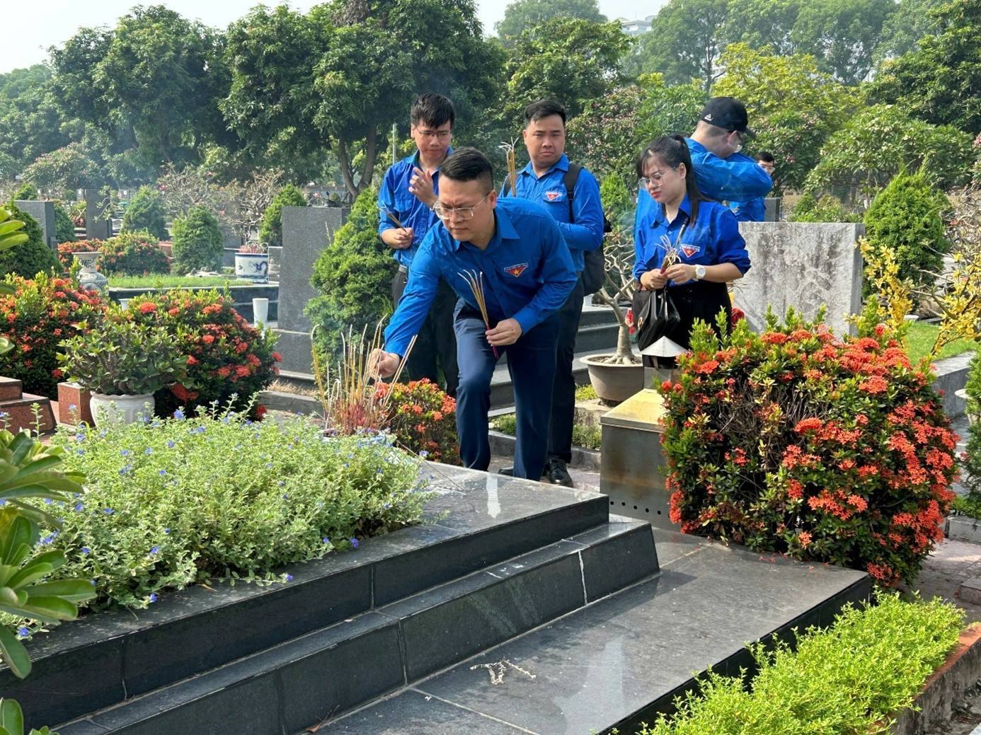 Các đoàn viên thanh niên thắp hương tại mộ phần của các đồng chí Nguyên Lãnh đạo Ban Cơ yếu Trung ương đã từ trần.