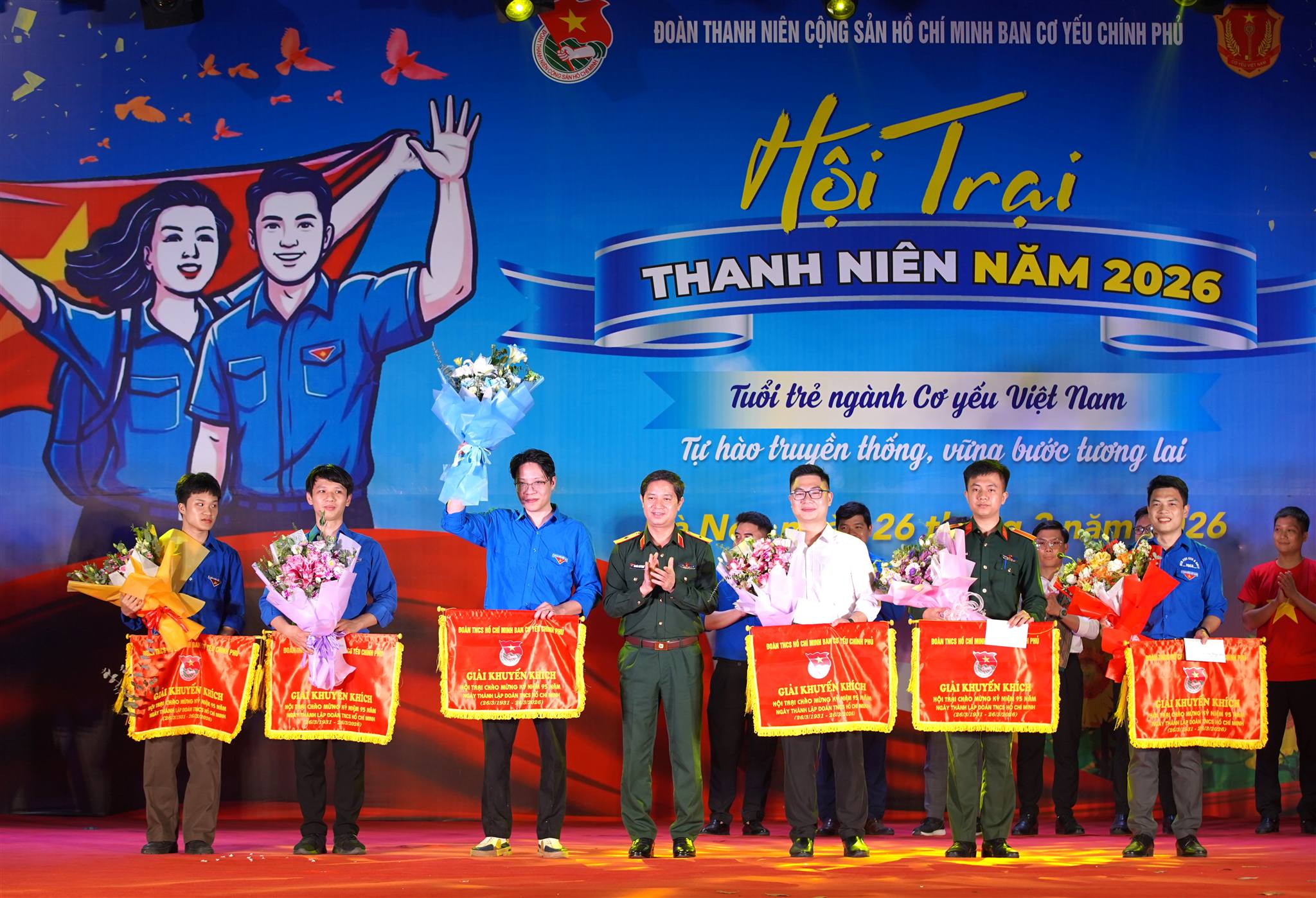 Thiếu tướng Nguyễn Hữu Hùng, Phó Trưởng ban Ban Cơ yếu Chính phủ trao giải trang trí trại cho các Chi đoàn.