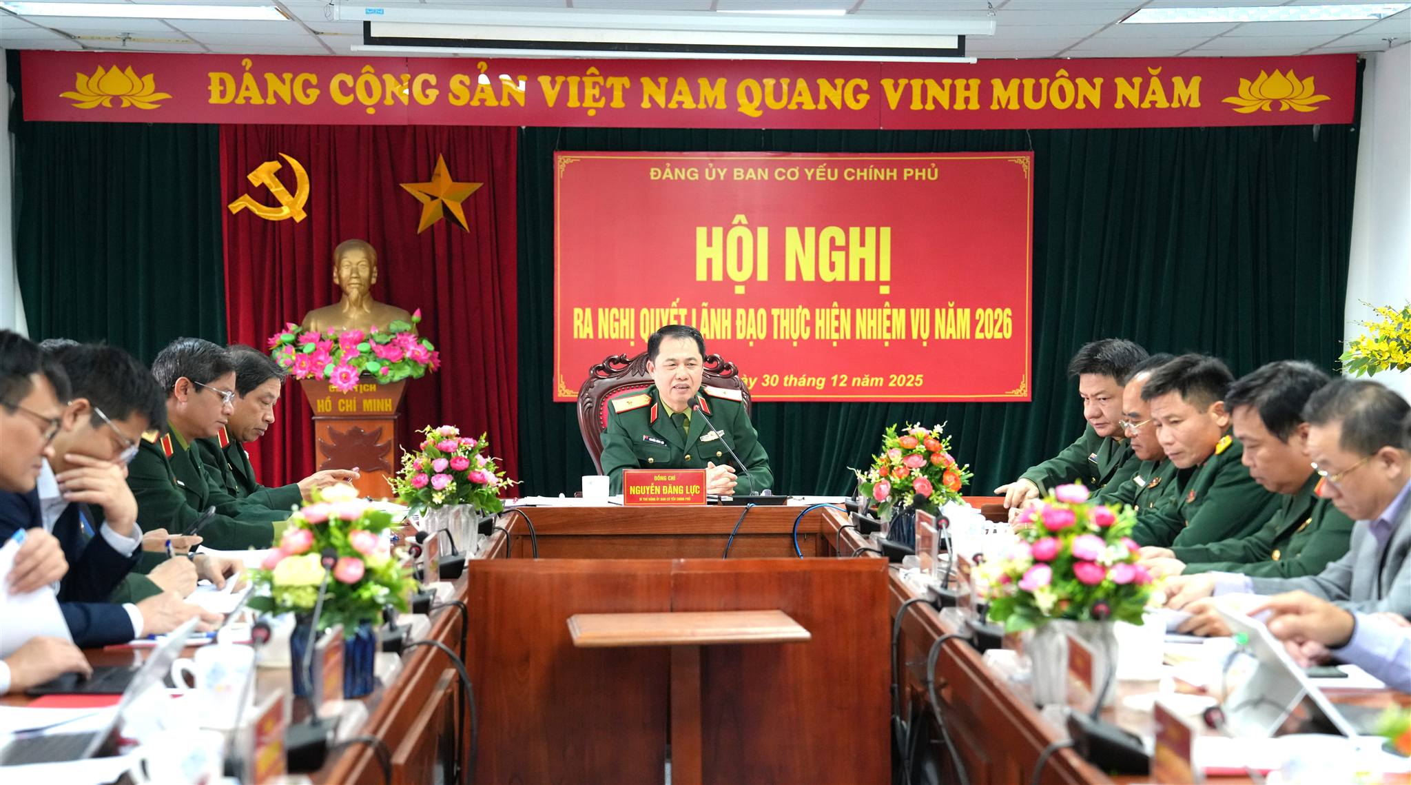 Chiều 30/12, tại Hà Nội, Đảng ủy Ban Cơ yếu Chính phủ đã tổ chức Hội nghị ra Nghị quyết lãnh đạo thực hiện nhiệm vụ năm 2026. Thiếu tướng Nguyễn Đăng Lực, Bí thư Đảng ủy, Phó Trưởng ban Ban Cơ yếu Chính phủ chủ trì Hội nghị.