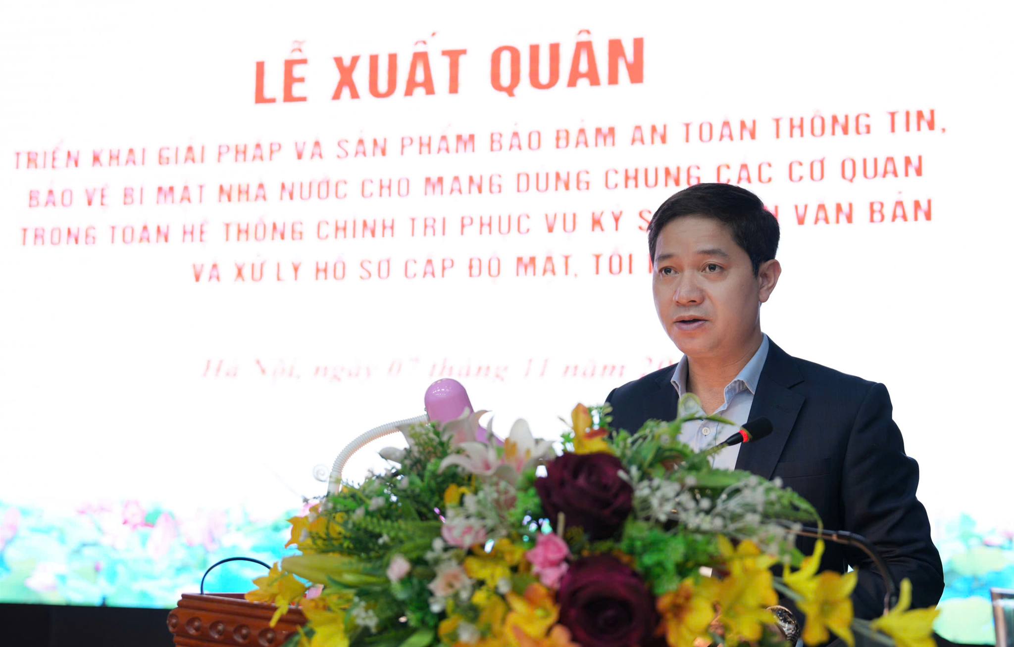 Với khí thế quyết tâm, đồng chí Nguyễn Hữu Hùng, Phó Trưởng ban Ban Cơ yếu Chính phủ thay mặt Lãnh đạo Ban tuyên bố xuất quân triển khai giải pháp và sản phẩm bảo đảm an toàn thông tin, bảo vệ bí mật nhà nước cho các cơ quan Trung ương và địa phương thuộc hệ thống chính trị. Đồng thời, kêu gọi toàn thể các cơ quan, đơn vị nêu cao tinh thần trách nhiệm, đoàn kết, đồng lòng vượt mọi khó khăn vì mục tiêu chung hoàn thành nhiệm vụ.