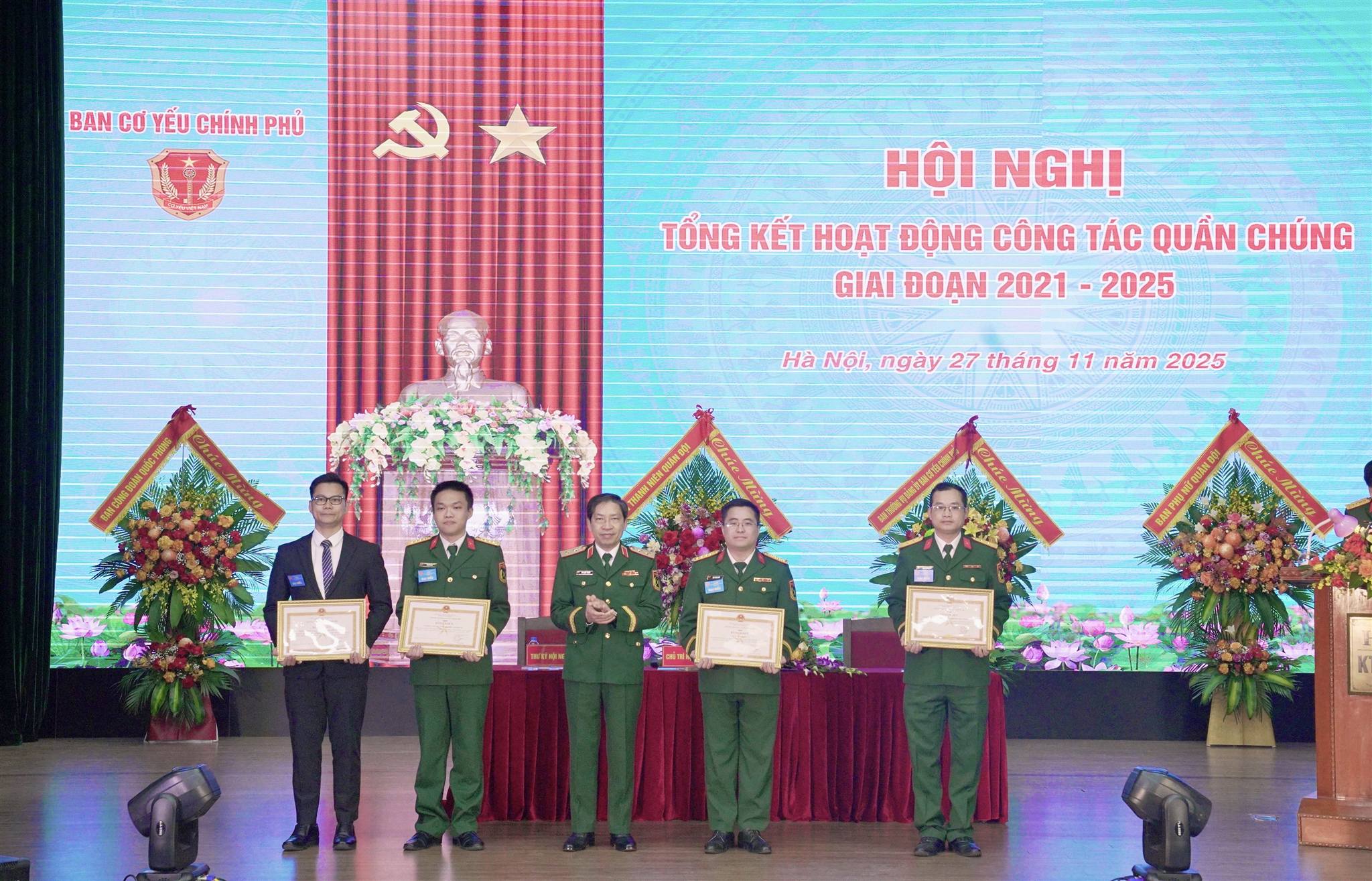 Trong khuôn khổ Hội nghị, Lãnh đạo Ban Cơ yếu Chính phủ đã trao thưởng cho các tập thể, cá nhân có thành tích xuất sắc trong hoạt động công tác quần chúng giai đoạn 2021-2025.