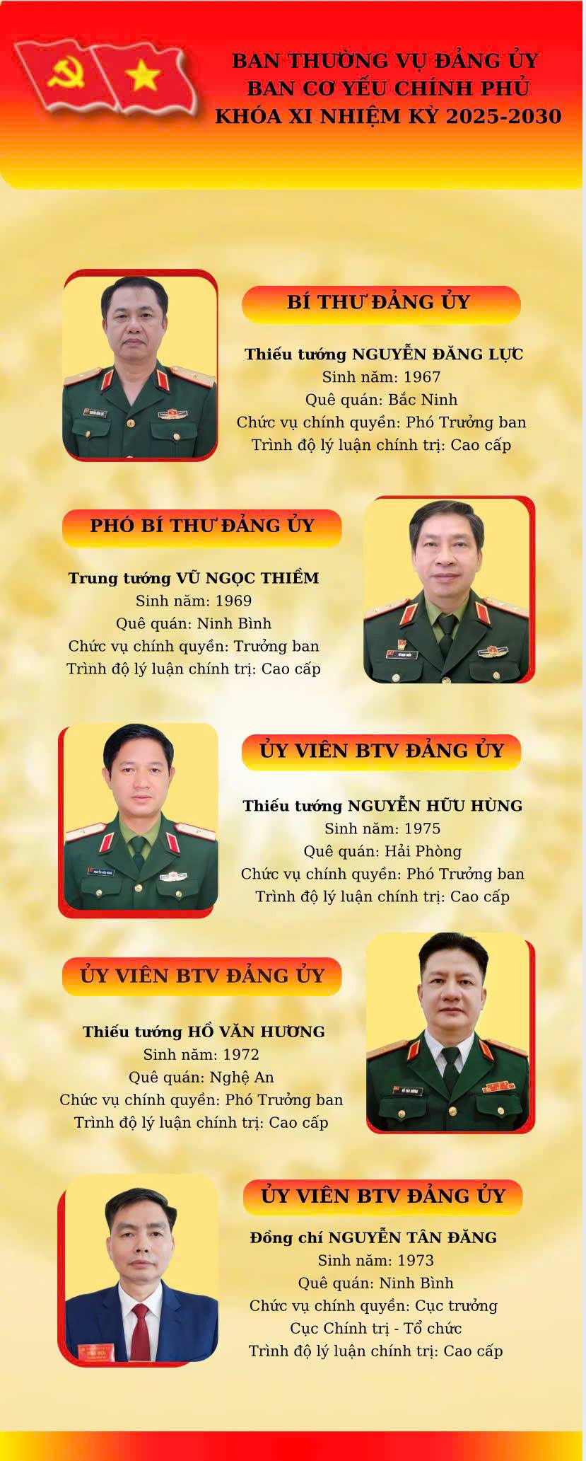 Ban Thường vụ Đảng ủy Ban Cơ yếu Chính phủ khóa XI nhiệm kỳ 2025-2030
