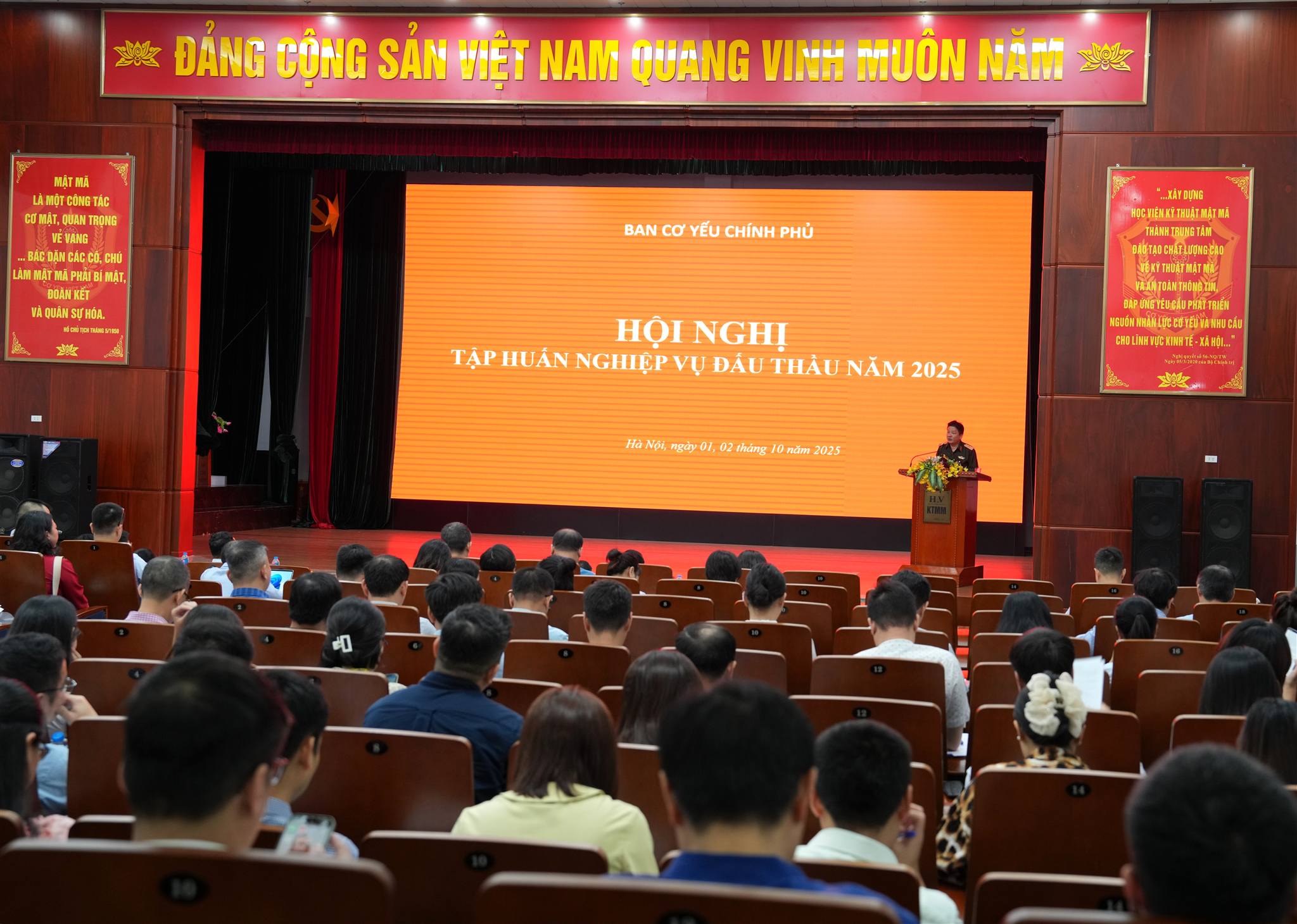 Với tinh thần chủ động, trách nhiệm và quyết tâm đổi mới, Ban Cơ yếu Chính phủ đã tổ chức thành công Lớp tập huấn nghiệp vụ đấu thầu năm 2025 trong hai ngày 01-02/10. Đây là hoạt động thiết thực, góp phần kiện toàn năng lực cán bộ, bảo đảm sự minh bạch, công khai và hiệu quả trong công tác tài chính, đầu tư - những lĩnh vực có ý nghĩa then chốt đối với một cơ quan mang tính đặc thù về an ninh, quốc phòng.