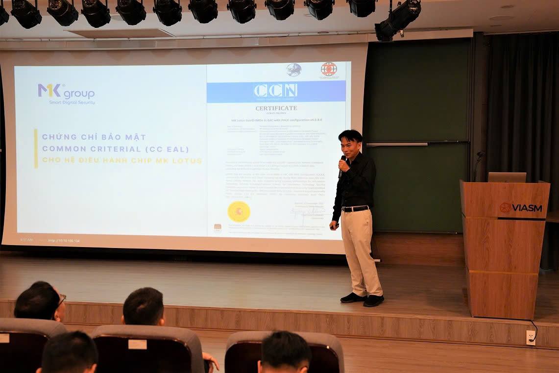 Ông Đỗ Viết Hà, Giám đốc Công nghệ MK Group giới thiệu chứng chỉ Common Criteria (CC) mức EAL 5+ của Lotus GovID tại Hội thảo