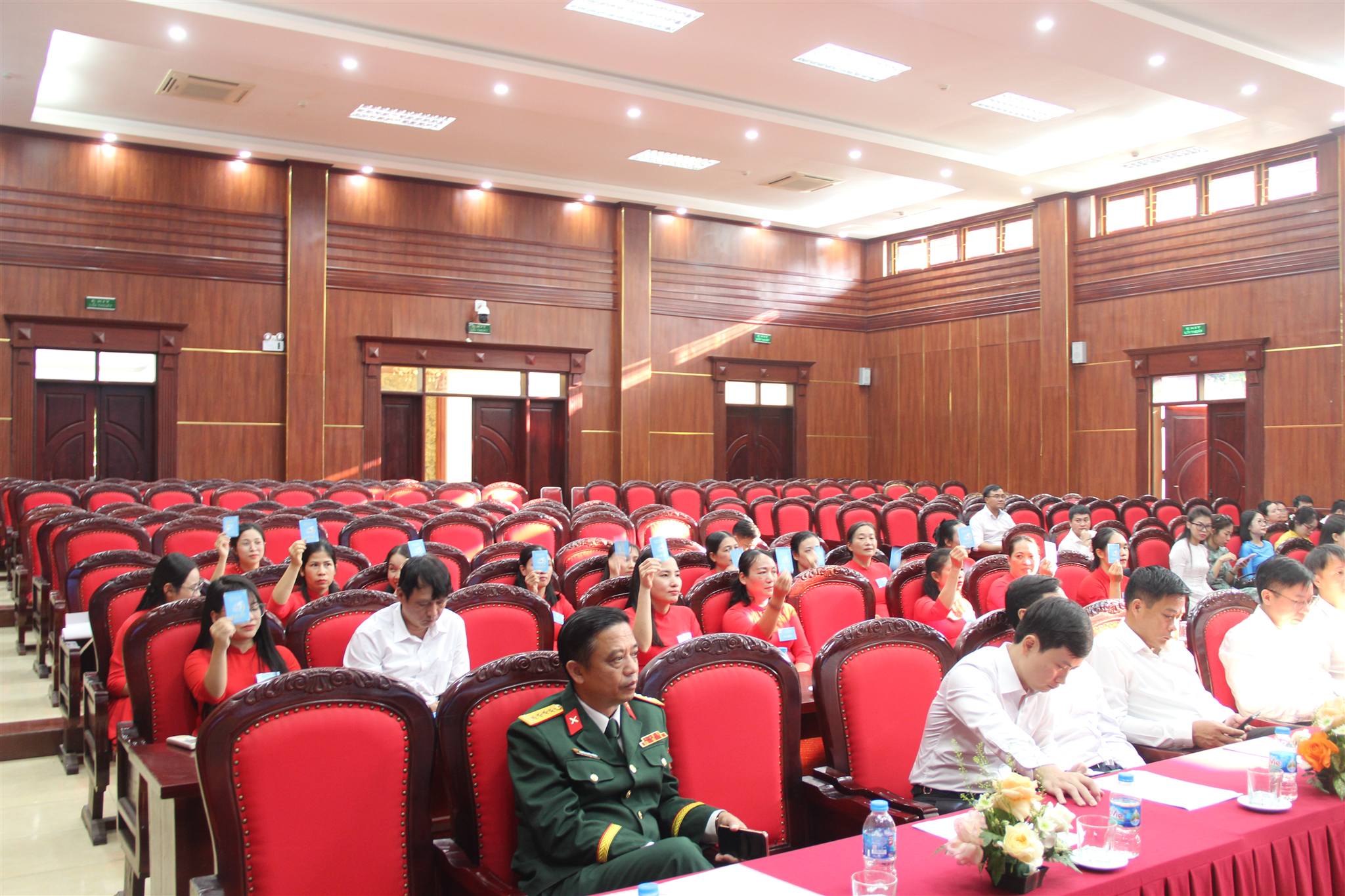 Các đại biểu nhất trí biểu quyết thông qua Nghị quyết Đại hội Hội phụ nữ M 951 nhiệm kỳ 2025 - 2030.