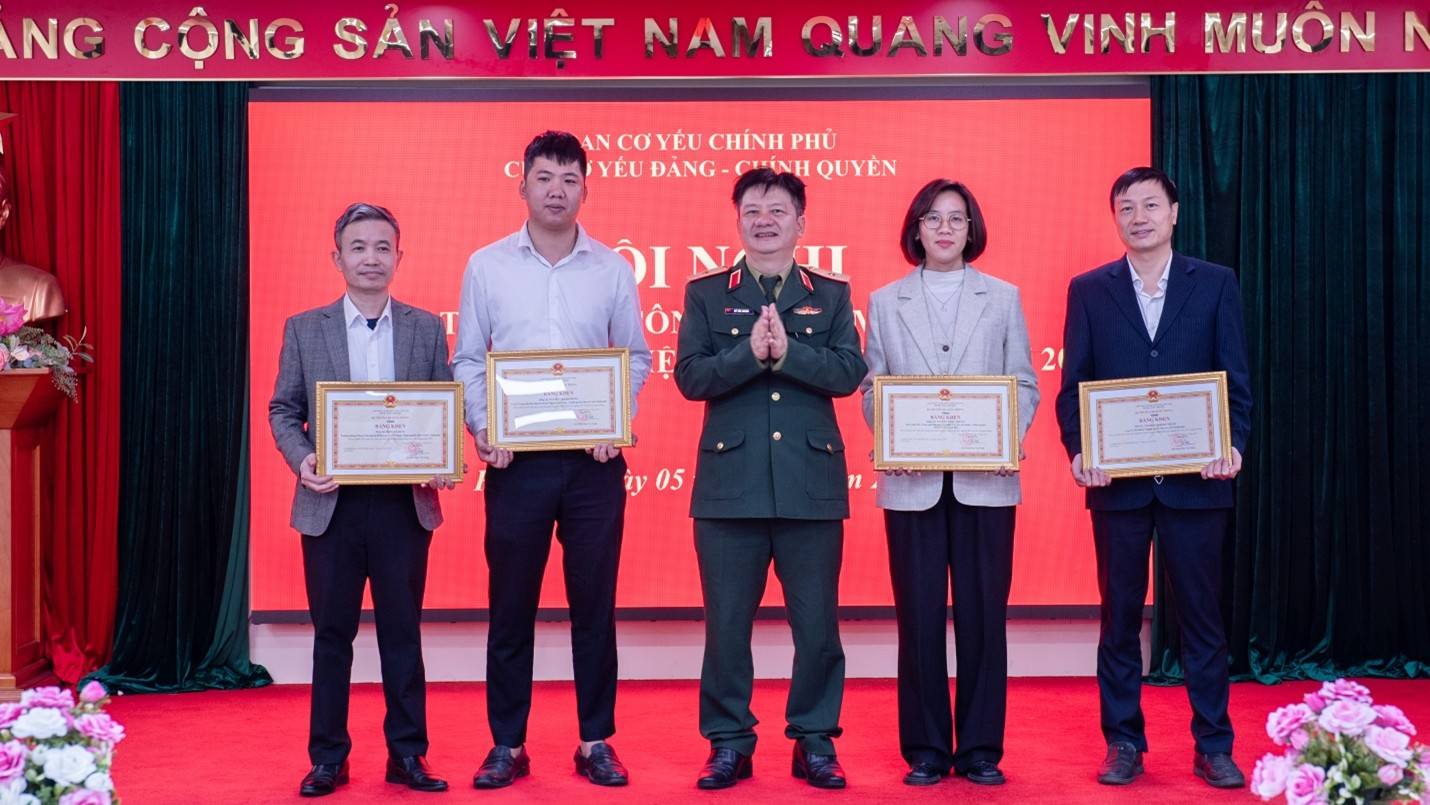 Tại Hội nghị, Thiếu tướng Hồ Văn Hương, Phó Trưởng ban Ban Cơ yếu Chính phủ và đồng chí Ngô Đức Thắng, Cục trưởng Cục Cơ yếu Đảng - Chính quyền đã trao thưởng cho các tập thể, cá nhân đạt thành tích xuất sắc trong thực hiện nhiệm vụ năm 2025.