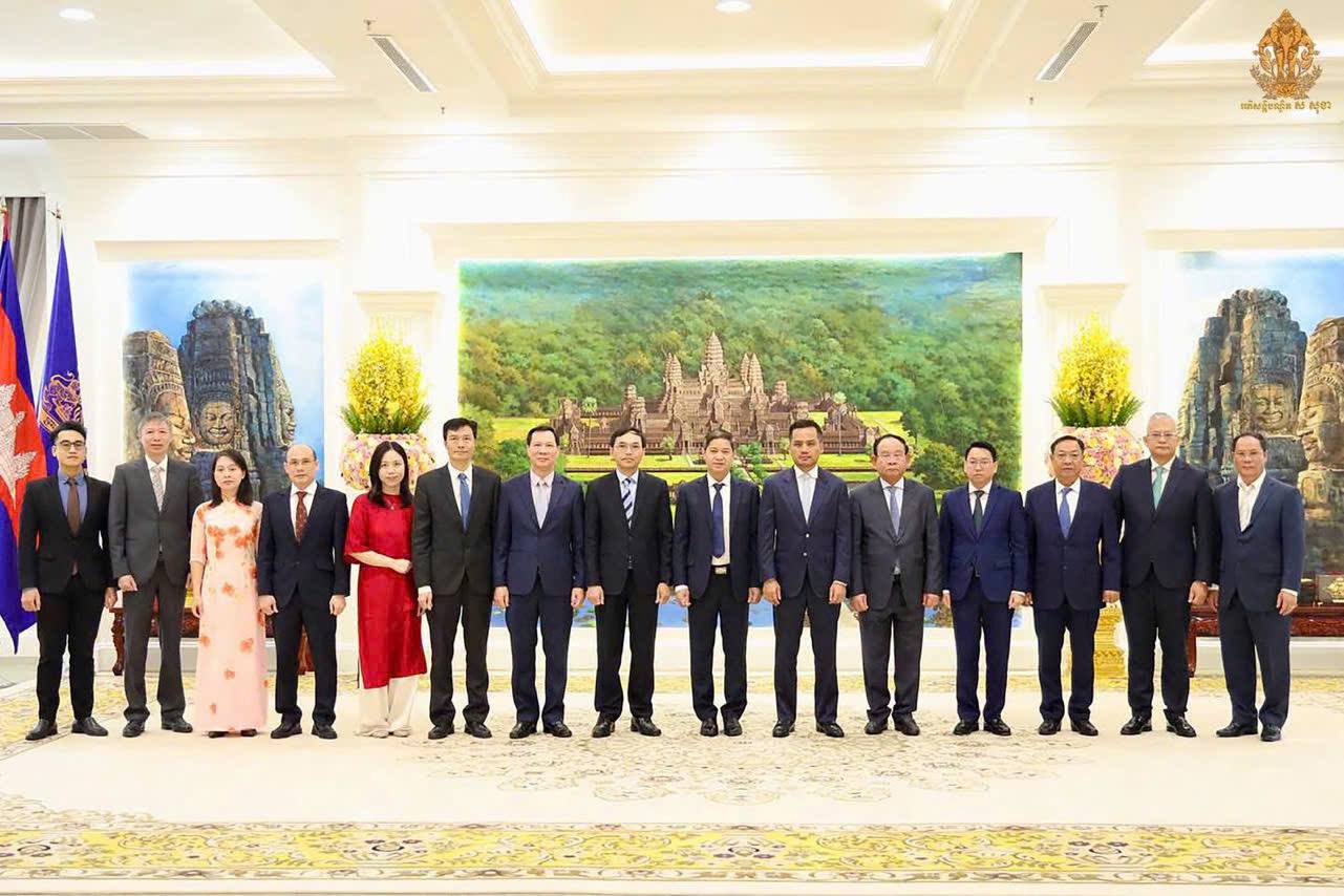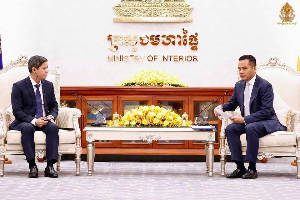 Đồng chí Nguyễn Hữu Hùng, Phó Trưởng ban Ban Cơ yếu Chính phủ hội đàm ngài Sar Sokha, Phó Thủ tướng, Bộ trưởng Bộ Nội vụ Vương quốc Campuchia.