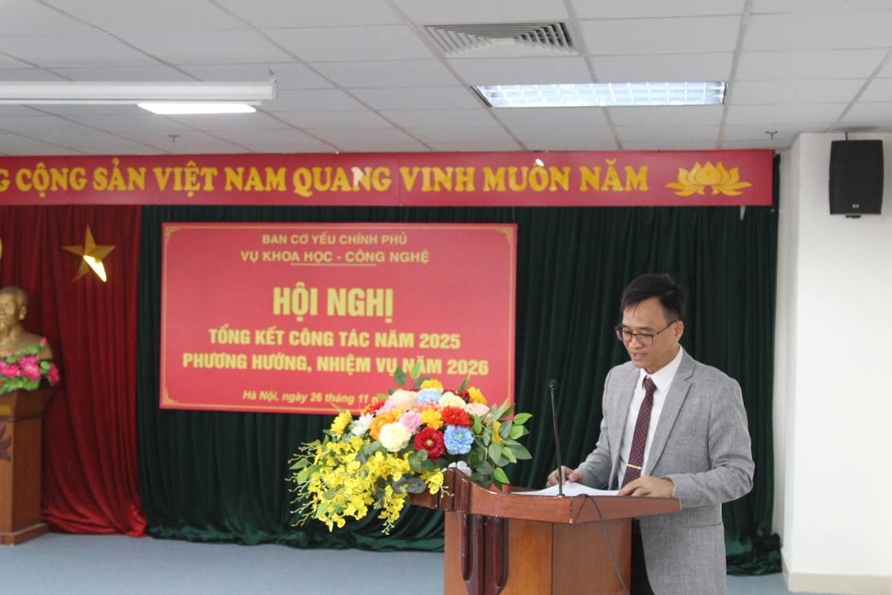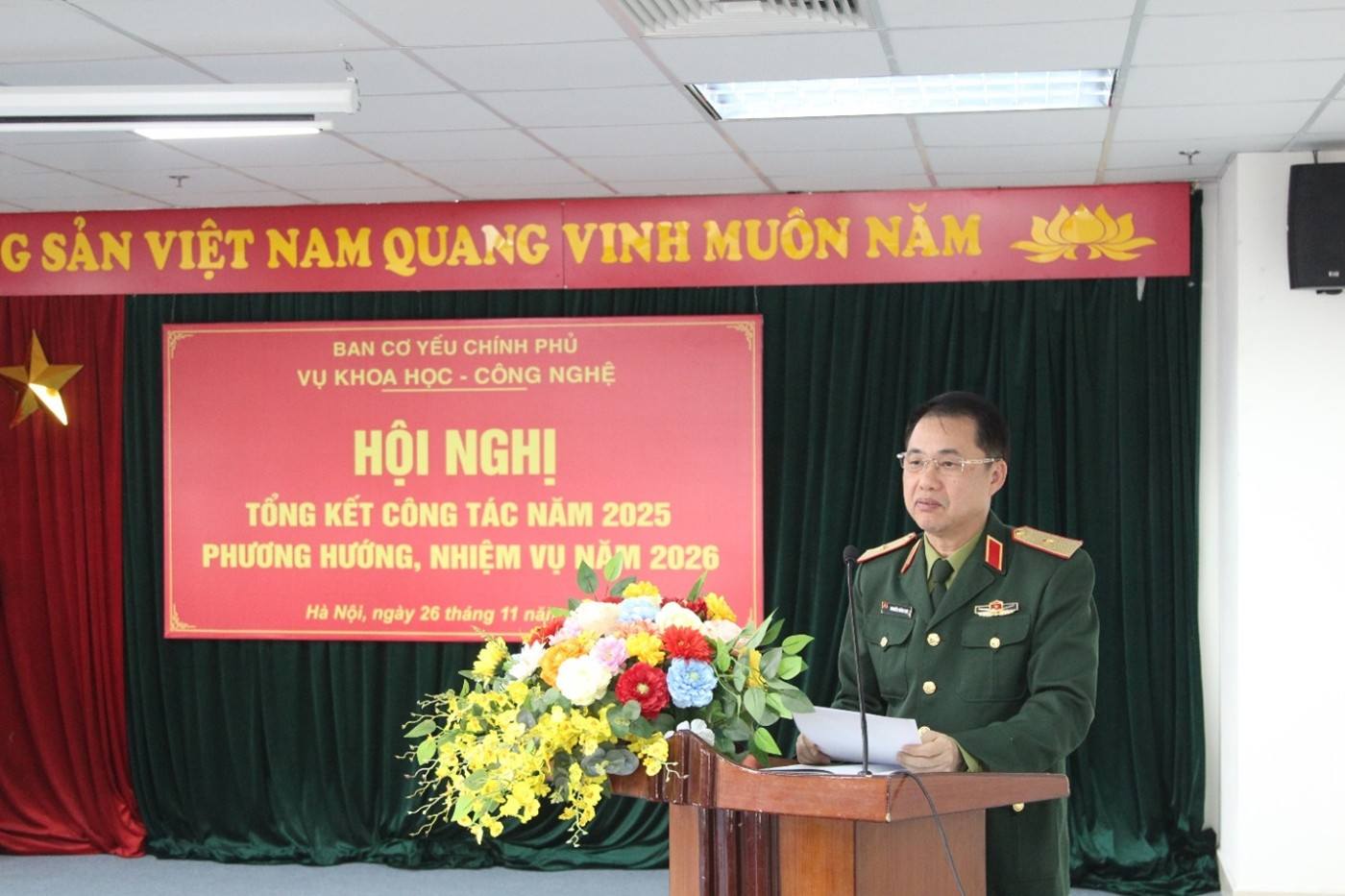 Chiều ngày 26/11, Vụ Khoa học - Công nghệ (KH-CN) đã tổ chức Hội nghị tổng kết công tác năm 2025 và triển khai phương hướng, nhiệm vụ năm 2026. Đồng chí Thiếu tướng Nguyễn Đăng Lực, Bí thư Đảng ủy, Phó Trưởng ban Ban Cơ yếu Chính phủ đến dự và chỉ đạo Hội nghị.